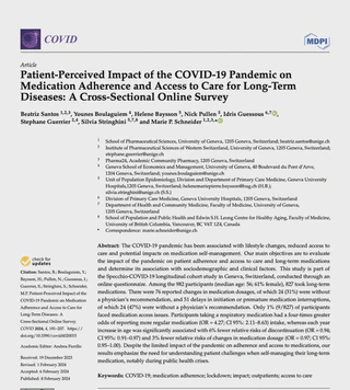 The COVID-19 pandemic disrupted care pathways, daily routines, and access to medications, raising concerns about self-management among people with long-term conditions. We conducted a cross-sectional online survey within the Specchio-COVID19 cohort in Geneva (n = 982) to quantify changes in medication use and identify associated sociodemographic and clinical factors.