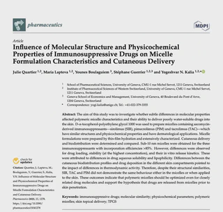 This study investigates how subtle differences in the molecular properties of three immunosuppressive drugs, namely, sirolimus, pimecrolimus, and tacrolimus, affect their behavior in polymeric micelles and their cutaneous delivery. Using TPGS-based micelles, we characterized size, drug loading, stability, release kinetics, and biodistribution in skin layers. While all three drugs formed stable micelles with high incorporation efficiencies, clear differences emerged in release profiles and skin penetration, driven largely by their aqueous solubility and lipophilicity. The findings highlight that even structurally similar molecules can behave differently in micellar systems and on the skin, emphasizing the need to optimize micelle formulations based on drug-specific properties.