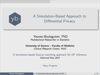 This talk presents a simulation-based approach to statistical inference under differential privacy, with a focus on proportion estimation. After reviewing the limitations of existing DP inference methods—such as noisy approximations and accuracy loss—we introduce DP-JIMI, a differentially private adaptation of the Just-Identified Minimal Distance estimator. The method leverages simulation, fiducial matching, and exact distributional results to deliver more reliable inference in finite samples, outperforming common alternatives while remaining simple to apply.