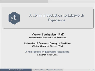 This talk provides a concise introduction to Edgeworth expansions, focusing on how they refine the normal approximation by incorporating cumulants and Hermite polynomials. Starting from characteristic functions and cumulant generating functions, we build the expansion step-by-step and explain its role in improving the accuracy of confidence intervals and bootstrap methods. Both studentized and non-studentized cases are discussed, along with the related Cornish–Fisher quantile expansion. The goal is to give a practical and intuitive overview of why these expansions matter in asymptotic statistics and when they outperform classical approximations.